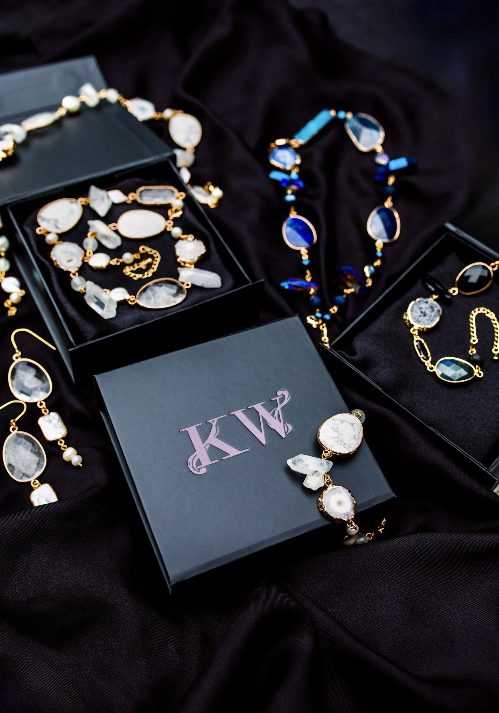Please note that each stone is unique, so your necklace may have slight variations while keeping the same types of stones, colour palette, and proportions. Water may affect the colour of the metal details.